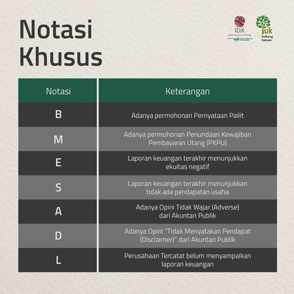 For example, as of June 17, 2025, issuers such as Mahaka Media Tbk (ABBA), Asuransi Bina Dana Arta Tbk (ABDA), Acset Indonusa Tbk (ACST), Artha Mahiya Investama Tbk (AIMS), and Anugerah Kagum Karya Utama Tbk (AKKU) have received Special Notation on the Indonesia Stock Exchange because they meet one or more of the following conditions: (1) Negative equity (Notation “E”), such as the case of ABBA, which recorded a capital deficit—due to the last financial report showing negative equity; (2) Low liquidity and weakening stock prices (Denoted as “X”) indicate minimal trading activity and prices below the IDX threshold for a prolonged period; (3) Delays in submitting financial reports result in the issuer receiving attention from the IDX and a notation for investors to be vigilant. This is a crucial call to action for investors to be extra cautious. Examples include ABBA and AKKU. Application for Suspension of Debt Payment Obligations (PKPU) or other legal issues, including the possibility of AIMS being included due to SEBI/PKPU restructuring in the overall market records, the IDX applies Special Notation to provide signals to investors regarding fragile financial conditions, low liquidity risks, or reporting compliance issues. This is a serious matter that could have a significant impact on the market.